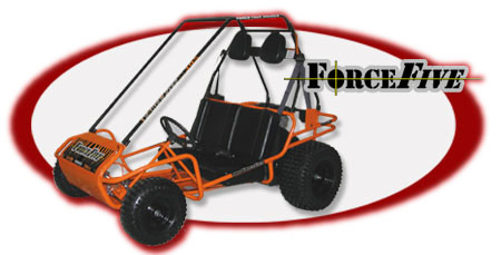 The all new Force Five Internmediate kart features great new styling with hot colors and graphics.This kart comes with the Subaru 5HP/126cc engine with a 3-Year Warranty. The drive train is torque converter drive to handle hills and tough terrain with ease. A disc brake provides the stopping power and the adjustable seat with dual retractable lap belts makes it a comfortable and safe ride. This machine is designed for those 12 and over. MSRP is $1,249.