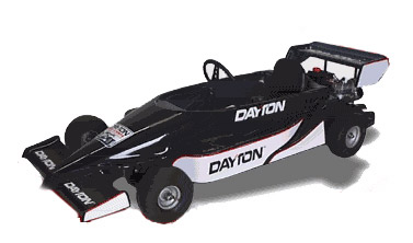 All the style of an Indy car with a fiberglass body mounted on a rugged fun-kart chassis. Features a 3.5 HP engine, slick tires, a band brake, fingertip adjustable seat and enough room for even an adult to drive. Generic or specialized graphics available to really make the kar (Shown with Dayton graphics). Available in 5 H.P. as model 715.