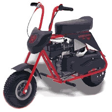Two wheel fun for the whole family. This entry level bike is powered by a rugged Tecumseh 4 cycle engine. The beautiful red finish is powder coated epoxy for great luster and durability, and the front and side fairings with colorful decals add to its appealing style. With a tall 23" seat height and engine mounted fuel tank, it can be shipped UPS! |