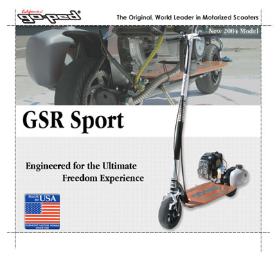 Its patented extra light heavy duty frame, cantilevered fork and gas tank coupled with a heavy duty rear axle, unbreakable fender and famous Go-Ped® folding feature make the GSR Sport the Ideal Go-Pedding Machine for Cruisers and Racers alike.